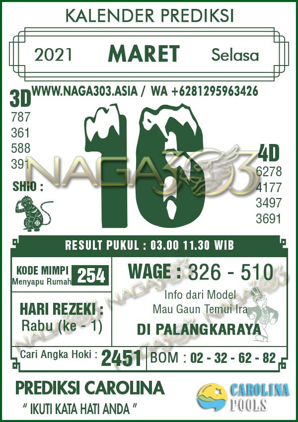 Prediksi Carolina Pools Selasa 16 Maret 2021 | Web Toto Naga303