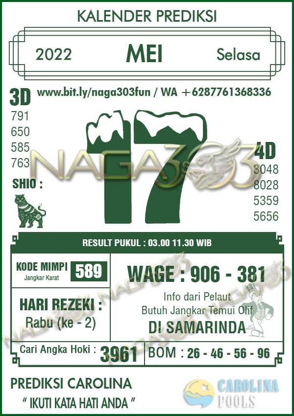 Prediksi Carolina Pools Selasa 17 Mei 2022 | Web Toto Naga303
