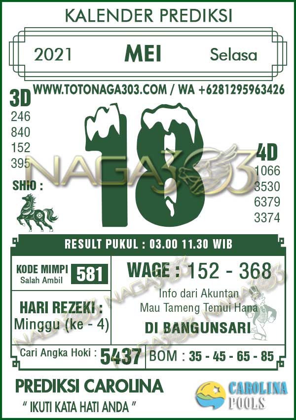 Prediksi Carolina Pools Selasa 18 Mei 2021
