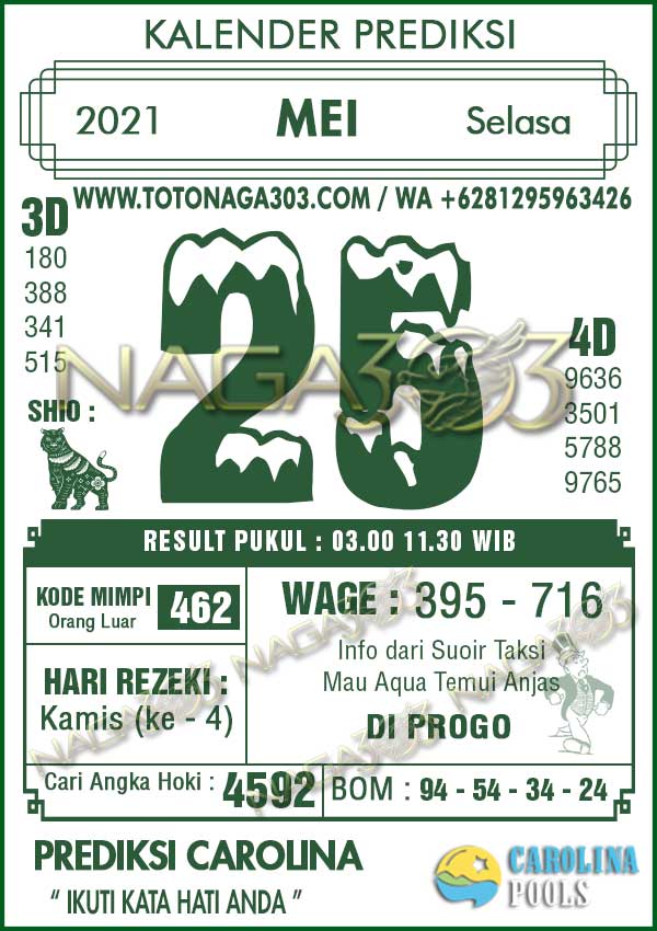 Prediksi Carolina Pools Selasa 25 Mei 2021