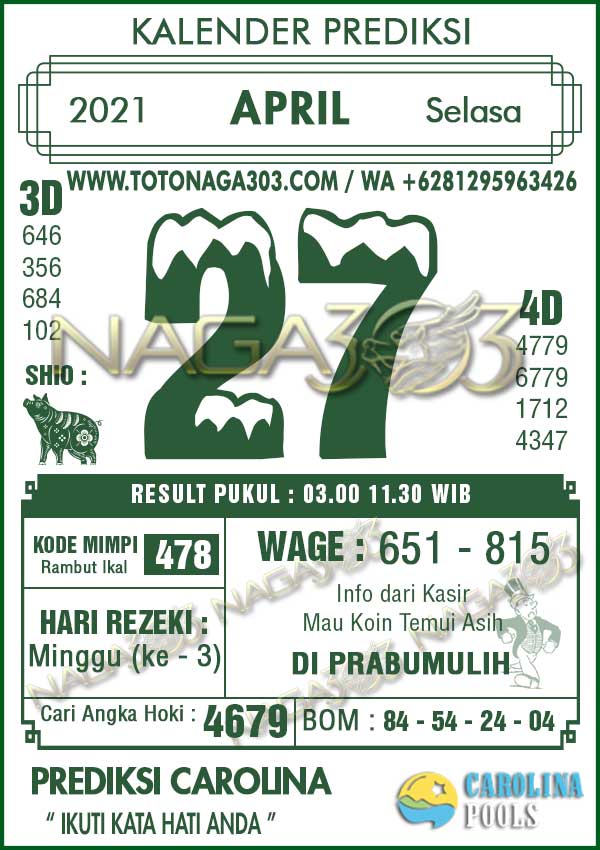 Prediksi Carolina Pools Selasa 27 April 2021 | Web Toto Naga303