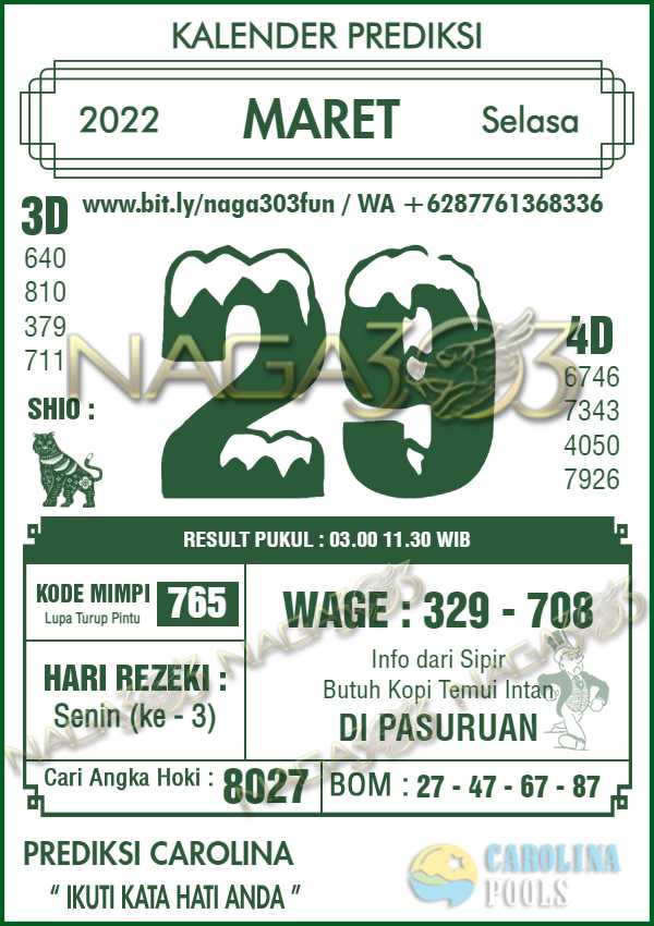 Prediksi Carolina Pools Selasa 29 Maret 2022