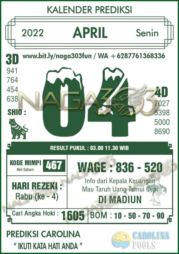 Prediksi Carolina Pools Senin 04 April 2022 | Web Toto Naga303