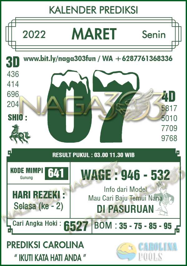 Prediksi Carolina Pools Senin 07 Maret 2022