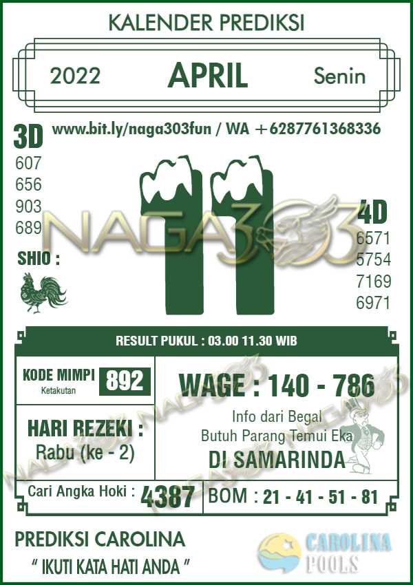 Prediksi Carolina Pools Senin 11 April 2022 | Web Toto Naga303