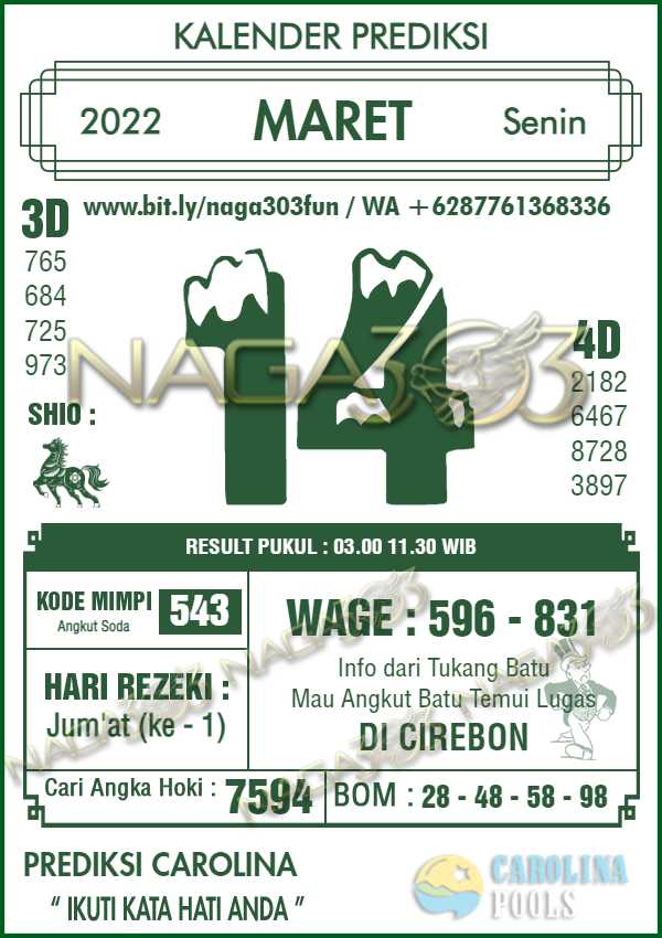 Prediksi Carolina Pools Senin 14 Maret 2022