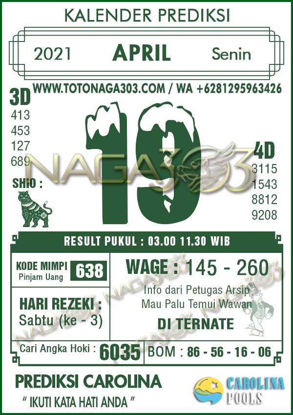 Prediksi Carolina Pools Senin 19 April 2021 | Web Toto Naga303