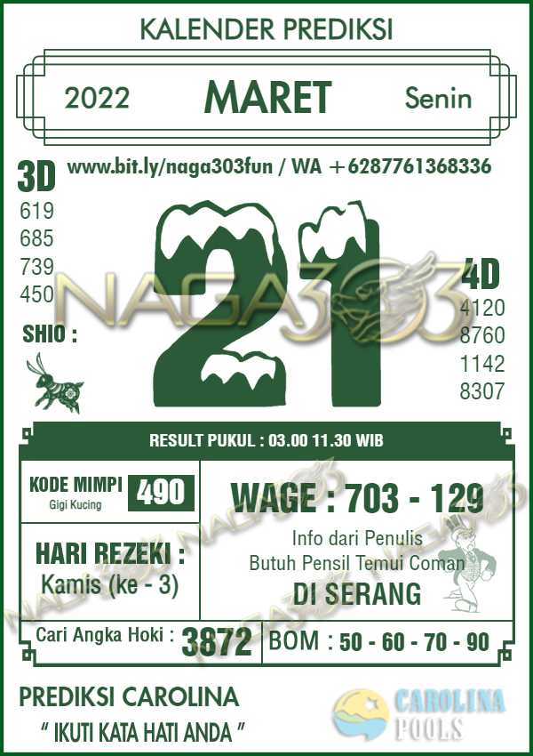 Prediksi Carolina Pools Senin 21 Maret 2022 | Web Toto Naga303