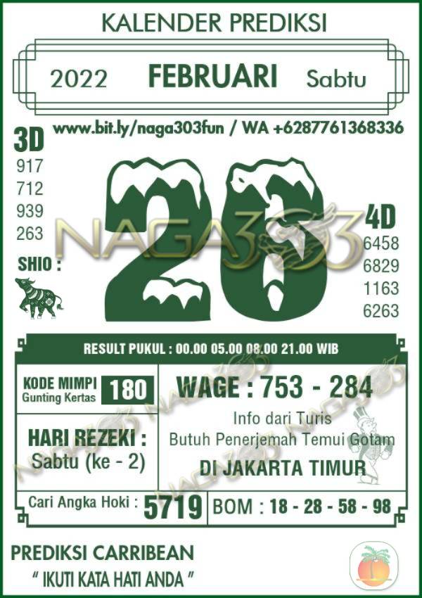 Prediksi Carribean Pools Sabtu 26 Februari 2022