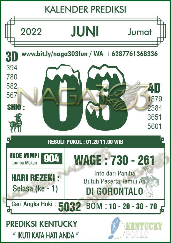 Agen Judi Online Terbesar & Terpercaya, Kami biasa memberikan info yaitu Prediksi KENTUCKY POOLS, dimana prediksi ini telah kami racik terlebih