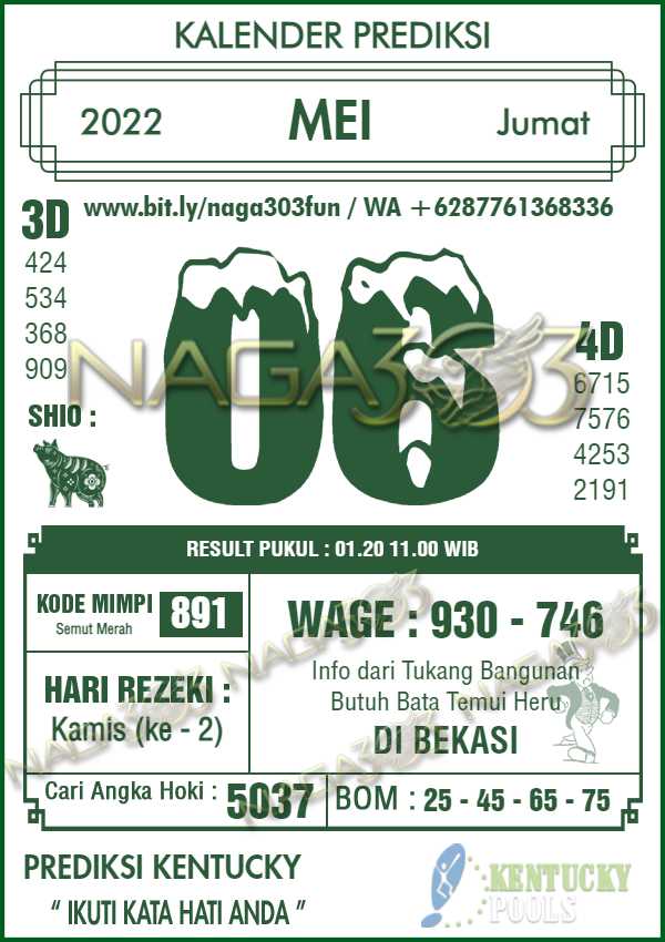 Agen Judi Online Terbesar & Terpercaya, Kami biasa memberikan info yaitu Prediksi KENTUCKY POOLS, dimana prediksi ini telah kami racik terlebih