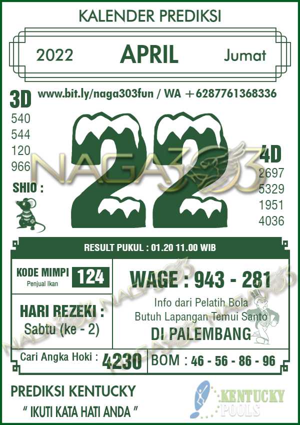 Prediksi Kentucky Pools Jumat 22 April 2022 | Web Toto Naga303