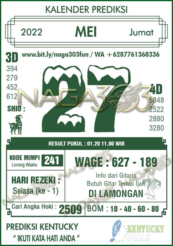 Agen Judi Online Terbesar & Terpercaya, Kami biasa memberikan info yaitu Prediksi KENTUCKY POOLS, dimana prediksi ini telah kami racik terlebih
