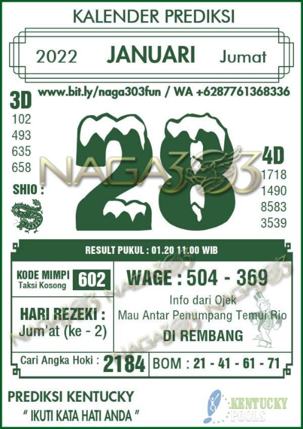 Prediksi Kentucky Pools Jumat 28 Januari 2022