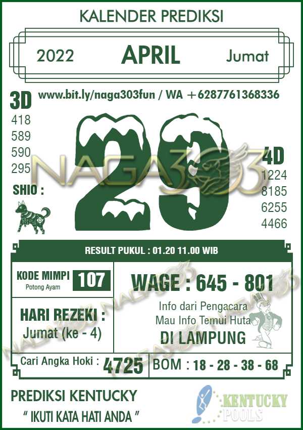 Prediksi Kentucky Pools Jumat 29 April 2022 | Web Toto Naga303