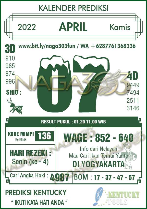 Prediksi Kentucky Pools Kamis 07 April 2022 | Web Toto Naga303
