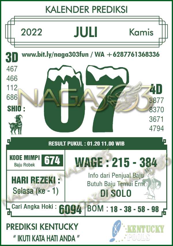 Agen Judi Online Terbesar & Terpercaya, Kami biasa memberikan info yaitu Prediksi KENTUCKY POOLS, dimana prediksi ini telah kami racik terlebih