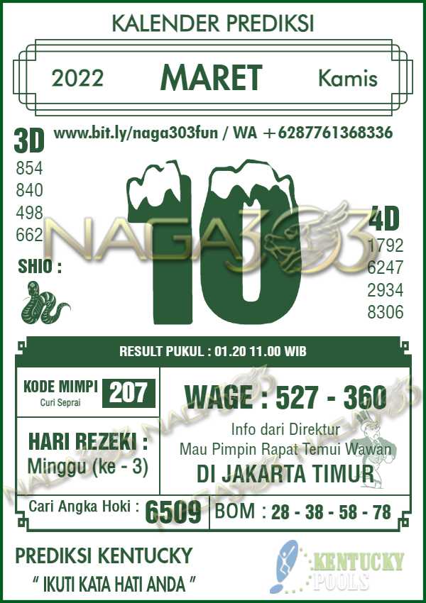 Prediksi Kentucky Pools Kamis 10 Maret 2022 | Web Toto Naga303