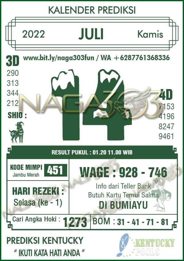 Prediksi Kentucky Pools Kamis 14 Juli 2022