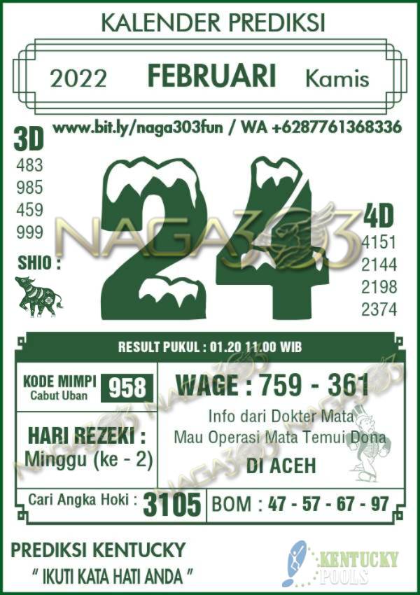 Prediksi Kentucky Pools Kamis 24 Februari 2022