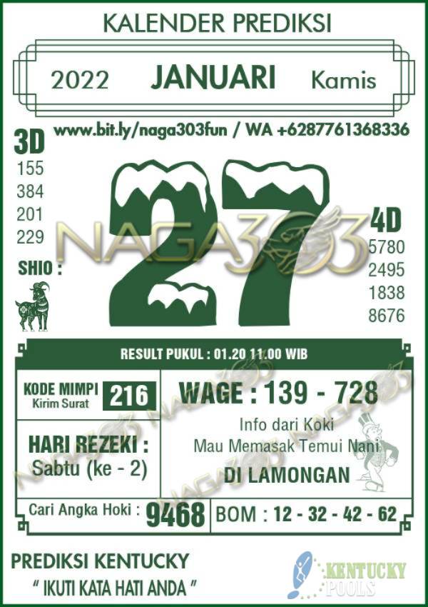 Prediksi Kentucky Pools Kamis 27 Januari 2022
