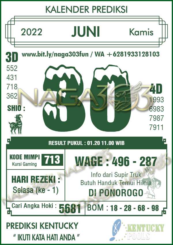 Agen Judi Online Terbesar & Terpercaya, Kami biasa memberikan info yaitu Prediksi KENTUCKY POOLS, dimana prediksi ini telah kami racik terlebih