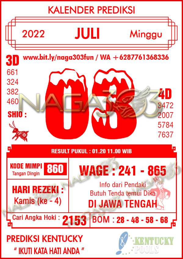 Prediksi Kentucky Pools Minggu 03 Juli 2022 | Web Toto Naga303