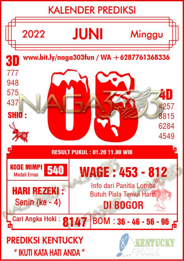 Prediksi Kentucky Pools Minggu 05 Juni 2022 | Web Toto Naga303