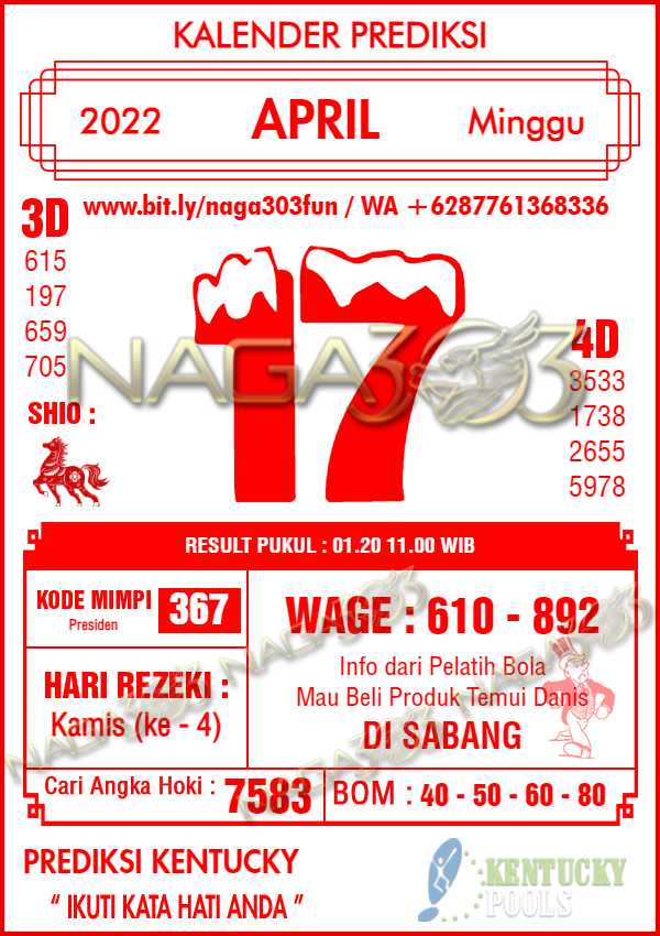 Prediksi Kentucky Pools Minggu 17 April 2022 | Web Toto Naga303