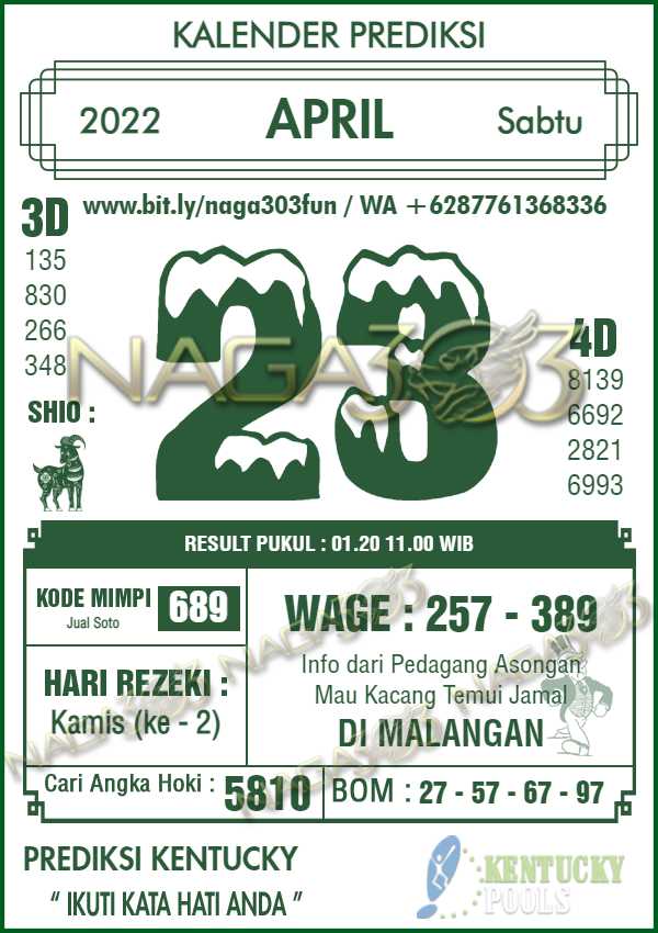 Prediksi Kentucky Pools Sabtu 23 April 2022