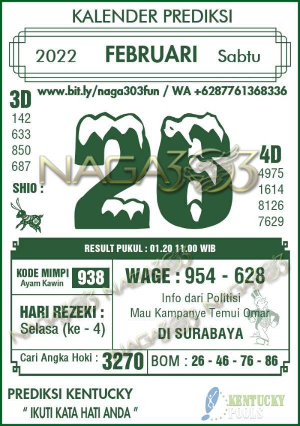 Prediksi Kentucky Pools Sabtu 26 Februari 2022 | Web Toto Naga303