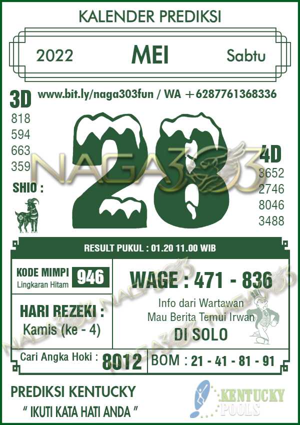 Agen Judi Online Terbesar & Terpercaya, Kami biasa memberikan info yaitu Prediksi KENTUCKY POOLS, dimana prediksi ini telah kami racik terlebih