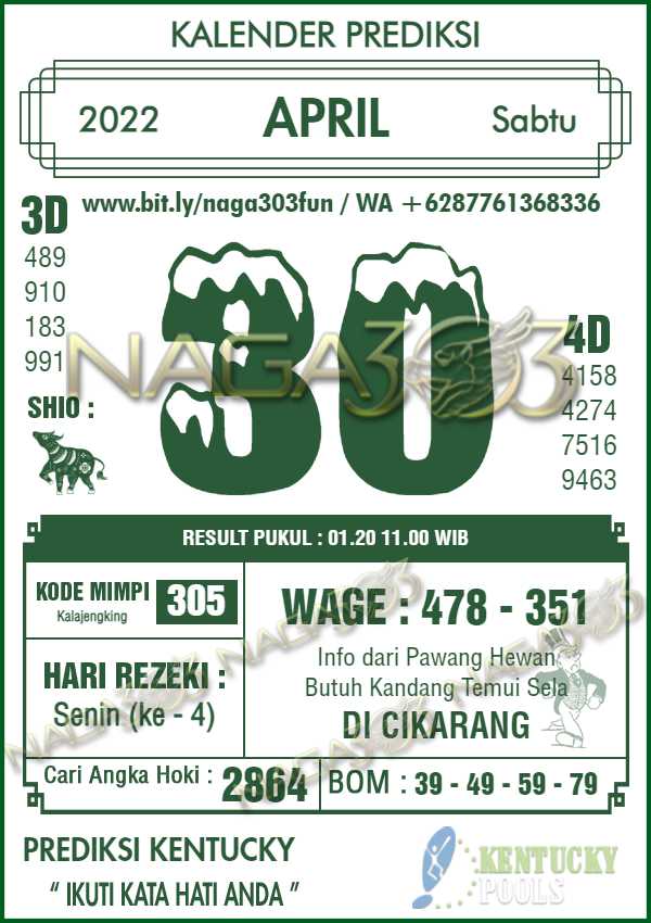 Prediksi Kentucky Pools Sabtu 30 April 2022