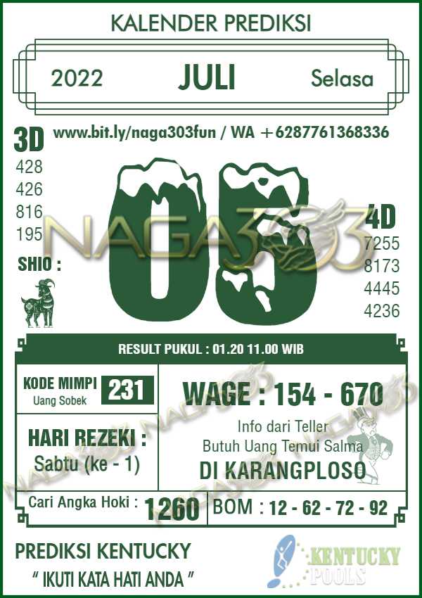 Agen Judi Online Terbesar & Terpercaya, Kami biasa memberikan info yaitu Prediksi KENTUCKY POOLS, dimana prediksi ini telah kami racik terlebih