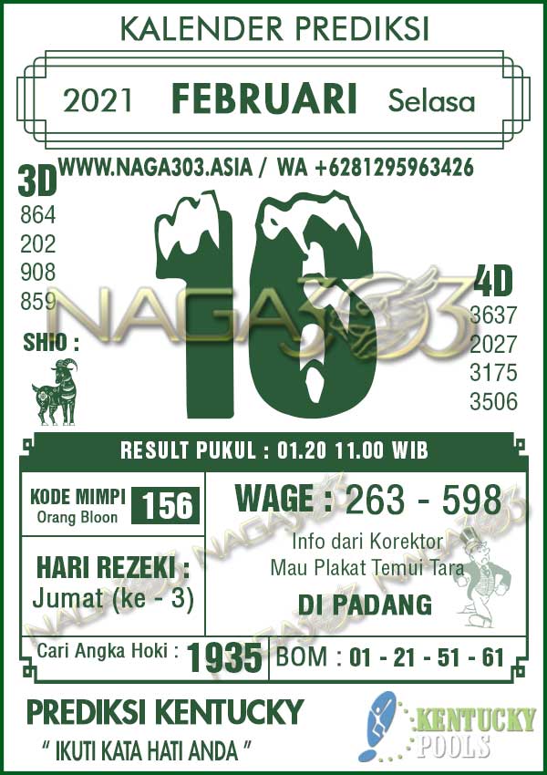 Prediksi Kentucky Pools Selasa 16 Februari 2021