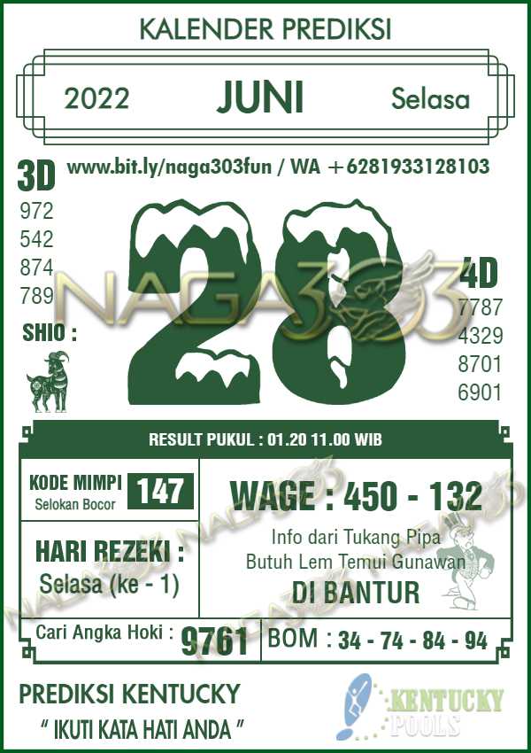 Agen Judi Online Terbesar & Terpercaya, Kami biasa memberikan info yaitu Prediksi KENTUCKY POOLS, dimana prediksi ini telah kami racik terlebih
