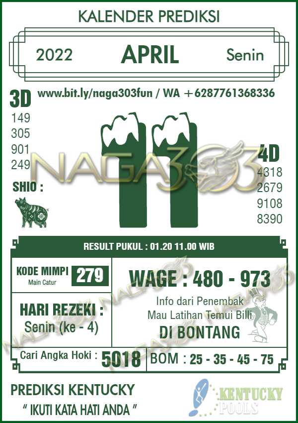 Prediksi Kentucky Pools Senin 11 April 2022 | Web Toto Naga303