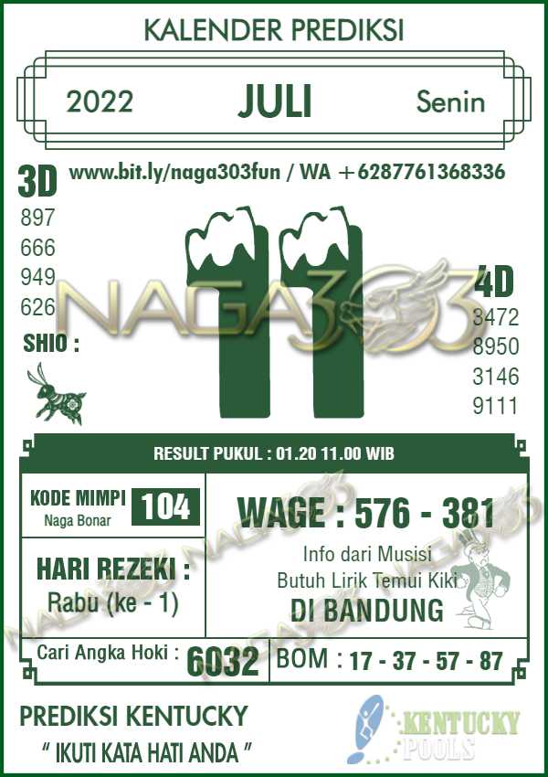 Agen Judi Online Terbesar & Terpercaya, Kami biasa memberikan info yaitu Prediksi KENTUCKY POOLS, dimana prediksi ini telah kami racik terlebih
