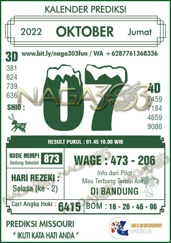 Prediksi Missouri Pools Jumat 07 Oktober 2022 | Web Toto Naga303