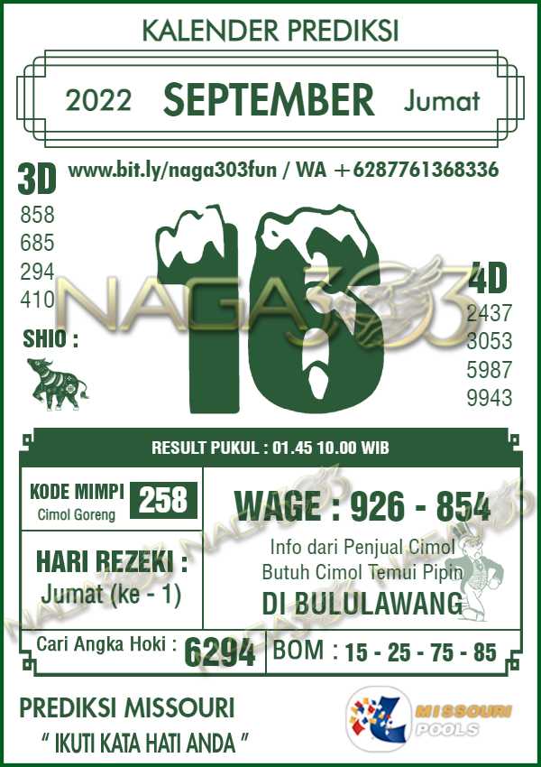 Agen Judi Online Terbesar & Terpercaya, Kami biasa memberikan info yaitu Prediksi MISSOURI POOLS, dimana prediksi ini telah kami racik terlebih