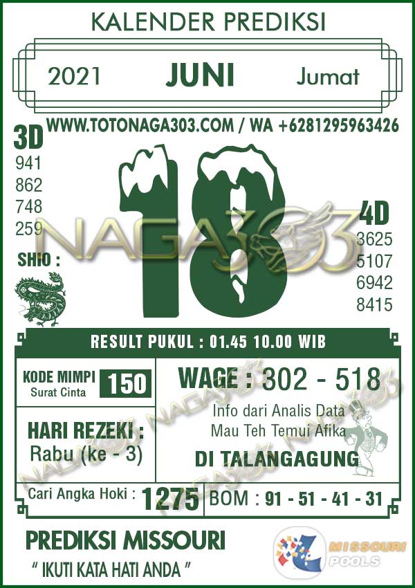 Prediksi Missouri Pools Jumat 18 Juni 2021