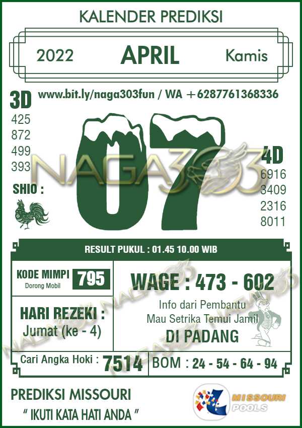 Prediksi Missouri Pools Kamis 07 April 2022 | Web Toto Naga303