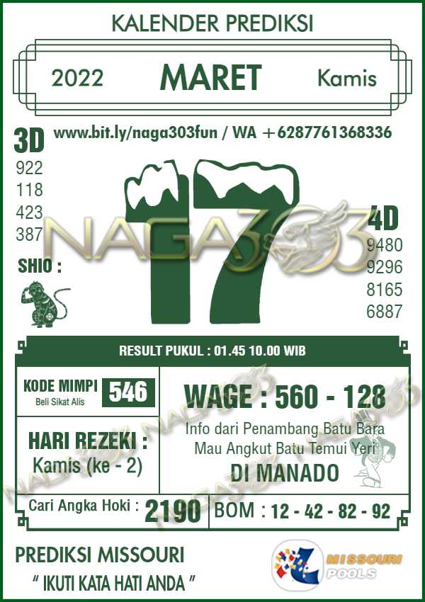 Prediksi Missouri Pools Kamis 17 Maret 2022