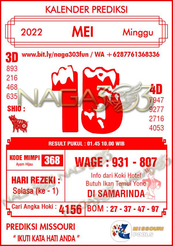 untuk informasi mengenai Prediksi MISSOURI POOLS, ini lah yang tadi kami bahas semoga bermanfaat prediksinya dan semoga anda beruntung. Salam Hokky…