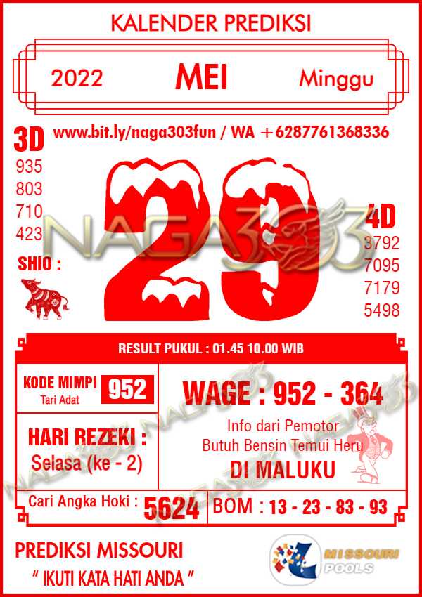 Prediksi Missouri Pools Minggu 29 Mei 2022 | Web Toto Naga303