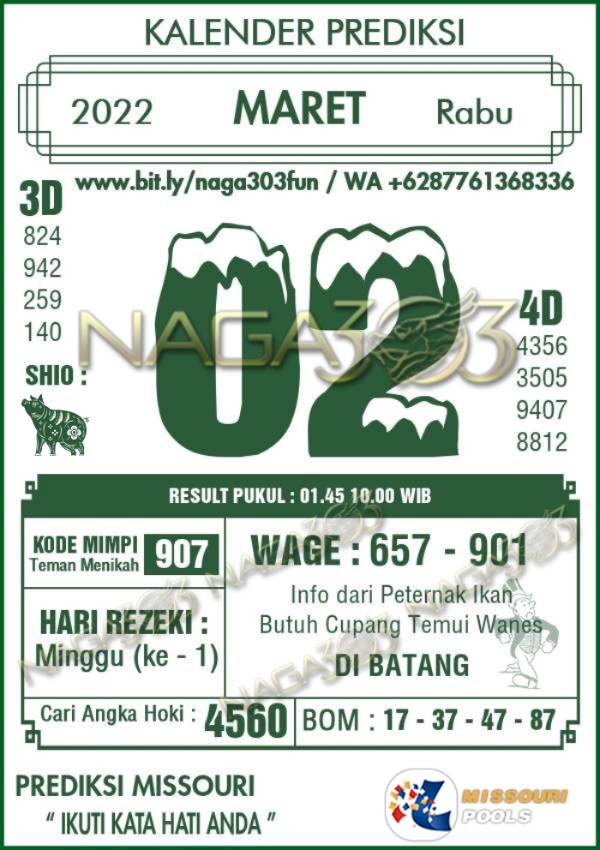 Prediksi Missouri Pools Rabu 02 Maret 2022 | Web Toto Naga303