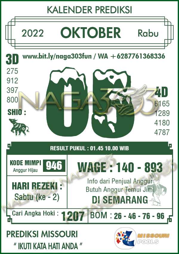 Prediksi Missouri Pools Rabu 05 Oktober 2022