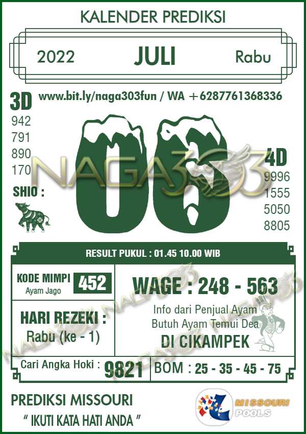 Agen Judi Online Terbesar & Terpercaya, Kami biasa memberikan info yaitu Prediksi MISSOURI POOLS, dimana prediksi ini telah kami racik terlebih