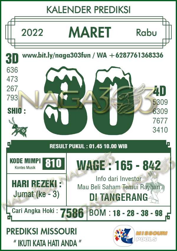Prediksi Missouri Pools Rabu 30 Maret 2022 | Web Toto Naga303