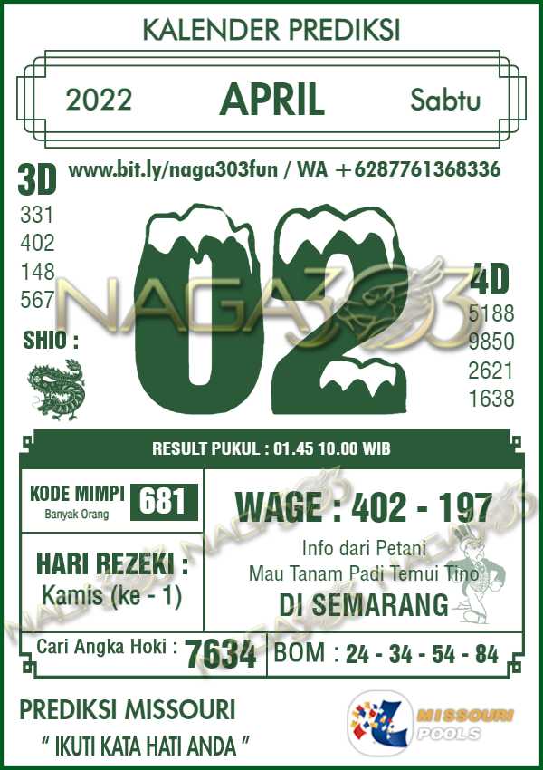 Prediksi Missouri Pools Sabtu 02 April 2022